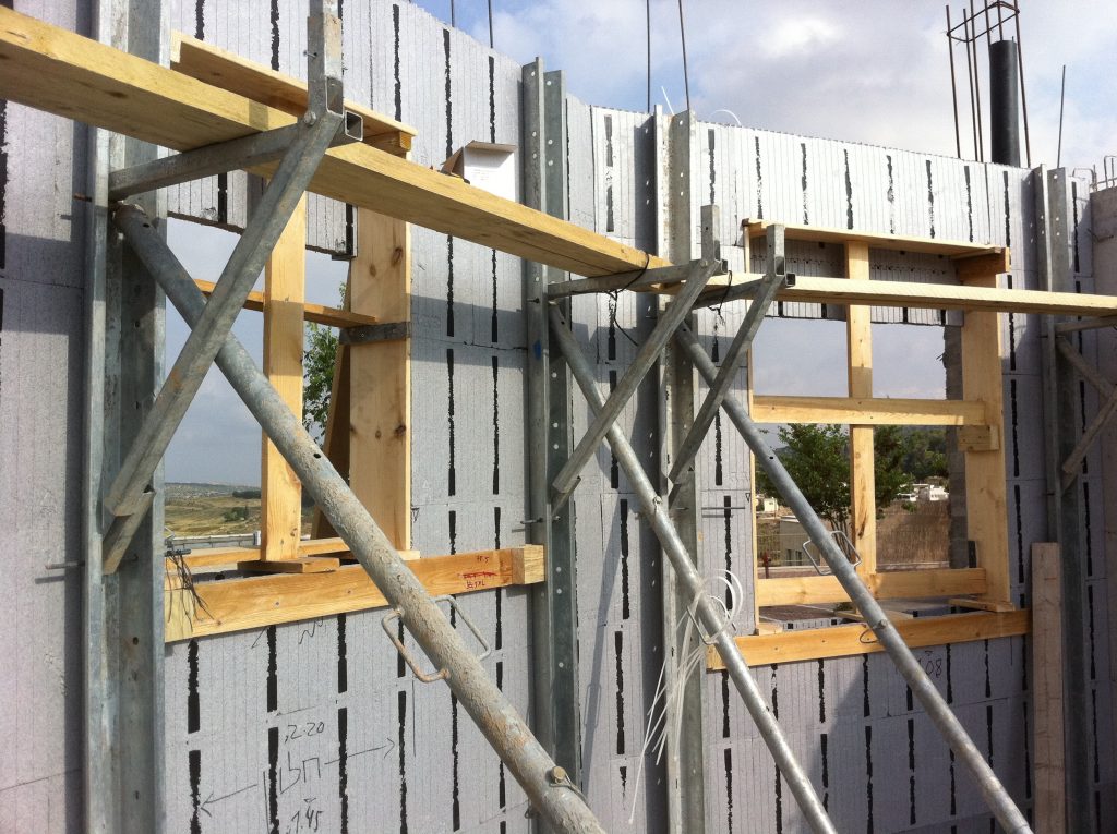 ⦁ שימוש בטפסנות עץ – טפסנות קרשים בהיקף החלון, משני צידי הקיר, תוך השארת פתחים בחלק התחתון כנכר לעיל.